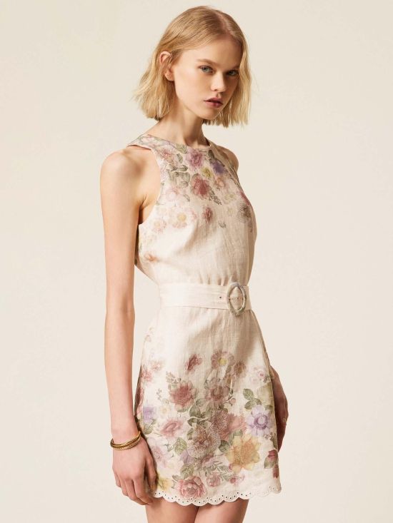 Twinset Γυναικείο Φόρεμα Linen Floral Short 261TT2571