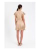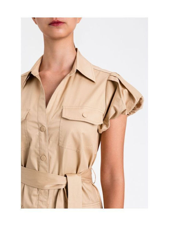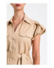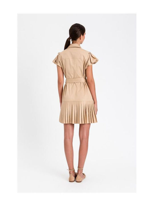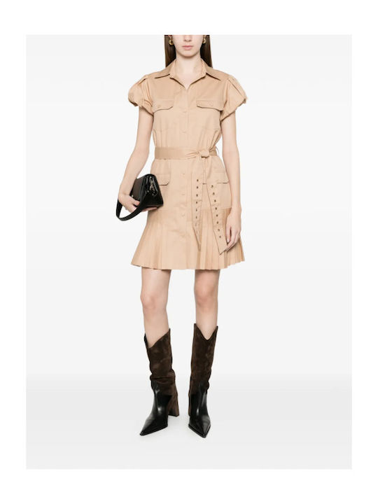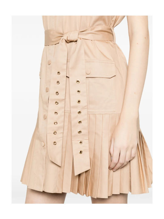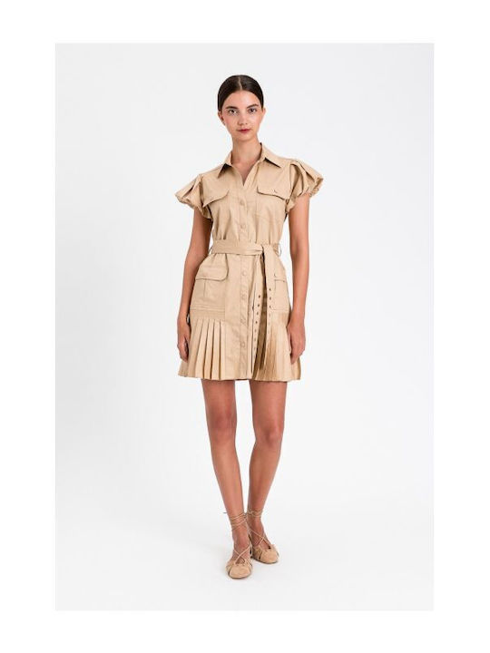 Μίνι φόρεμα με ζώνη και πτυχώσεις. Κούμπωμα με κουμπιά, τσέπες στο στήθος, πλισέ φούστα και ζώνη στη μέση.